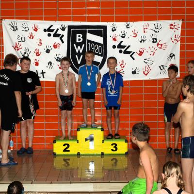 Die schnellen Aktiven brachten das Wasser im Fildekenbad ein ums andere Mal zum Brodeln, am Beckenrand kümmerte sich das Kampfrichter- und Orgateam unter der Leitung von Christoph Nappers und Schiedsrichter Lars Kreilkamp und Karen Tielkes vom ausrichtenden TSV um den reibungslosen Ablauf. Nach sechs Stunden ertönte planmäßig der letzte Startpfiff.